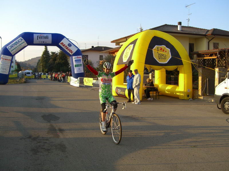 Gara ciclo cross 13 gennaio 2008 - Palazzina prima prova campionato provinciale di Verona Prima gara ed è subito vittoria. Inizia nel migliore dei modi l’annata agonistica per Michela Ton con assoluta supremazia domina fin dalle prime battute la gara d’apertura della stagione agonistica del ciclismo veronese. Nonostante le pessime condizioni atmosferiche, freddo,pioggia e tanto fango, vince convince e balza al comando della classifica provvisoria per l’assegnazione del titolo di campionessa provinciale di ciclo cross. Buono il rientro alle gare dopo lunga assenza di Andrea Beghini con una prestazione maiuscola considerando che è più di due mesi che non gareggia piazzandosi al quinto posto ed in lotta per riconquistare il titolo di campione provinciale occupando per ora il secondo posto nella classifica provvisoria. Prossimo appuntamento domenica 10 febbraio 2008 sempre a Palazzina, speriamo con il sole. |