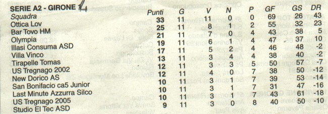 Classifica serie A2 - Girone 4