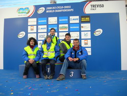Mondiali CicloCross 2008 - Alcuni atleti dell’Hellas Monteforte ai mondiali di ciclo cross Due giorni di grande lavoro e spettacolo sono quelli che hanno trascorso i nostri ragazzi inseriti nell’organizzazione dell’evento mondiali di ciclo cross presso i laghi le Bandie sul Montello Treviso. Ci si è resi conto da subito di essere all’interno di un evento di importanza mondiale, siamo stati invasi da migliaia di supporter olandesi, belgi, francesi, tedeschi, spagnoli, americani ,giapponesi, cechi, svizzeri, inglesi e italiani. Impressionante la quantità di birra consumata in questi due giorni, sembrava l’Oktober Fest, una grande festa attorno alle transenne e sulle tribune. E noi siamo andati li per imparare ..... e per fare della DivinusBike e della DivinusCross 2008 qualcosa di magico !!
